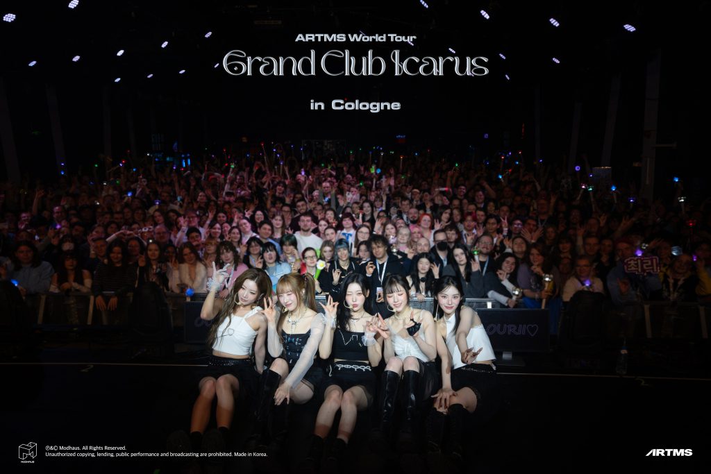 On January 17, ARTMS brought their Grand Club Icarus Tour to Die Kantine in Cologne. Formed by former LOONA members HeeJin, HaSeul, Kim Lip, JinSoul, and Cheorry, ARTMS has carved out a distinct artistic identity rooted in ambitious concepts, emotional depth, and experimentation with genres. Their current Grand Club Icarus Tour is built around themes of transformation, resistance, and rebirth, expanding the group’s universe beyond traditional album cycles and into a broader narrative experience. This era follows their latest comeback with the mini-album <Club Icarus>, released in June 2025, which not only broke their own first-week sales record but also introduced the lead single, “Icarus.” Inspired by the mythological figure, the track centers on healing and hope for those who have been wounded, setting the conceptual foundation for a tour that invites fans to reflect, rise, and grow alongside the group.