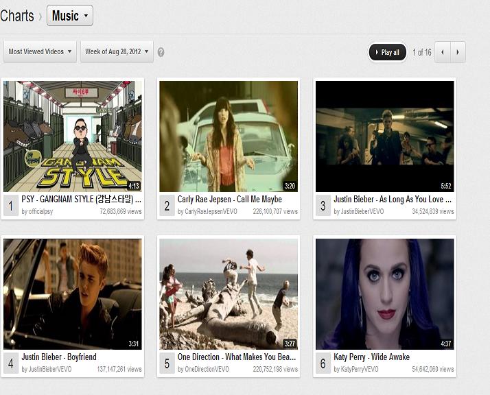 Check out the screenshot of the list to see popularity of Psy’s MV for yourself,